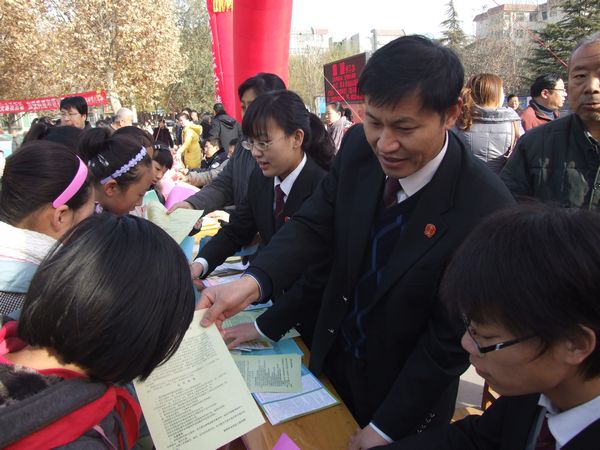 在现场,法官们将自己在平时办案过程中积累下来的法律经验和人们生活中常遇到的法律问题,向驻足停留的群众适时讲解着,活动现场气氛浓厚而热烈。法官同志,俺孩子给人干活时摔伤了,该咋办呀?一位老大爷颤颤巍巍的问道。年轻女干警陈新玲热情地将老大爷搀扶到咨询台前椅子上坐下,在问清事情来由后,用简明扼要、通俗易懂的语言解释着法律法规,问其指明解决问题的几种可行途径,并送上警民联系卡,及时消除了他心中的顾虑和困惑。